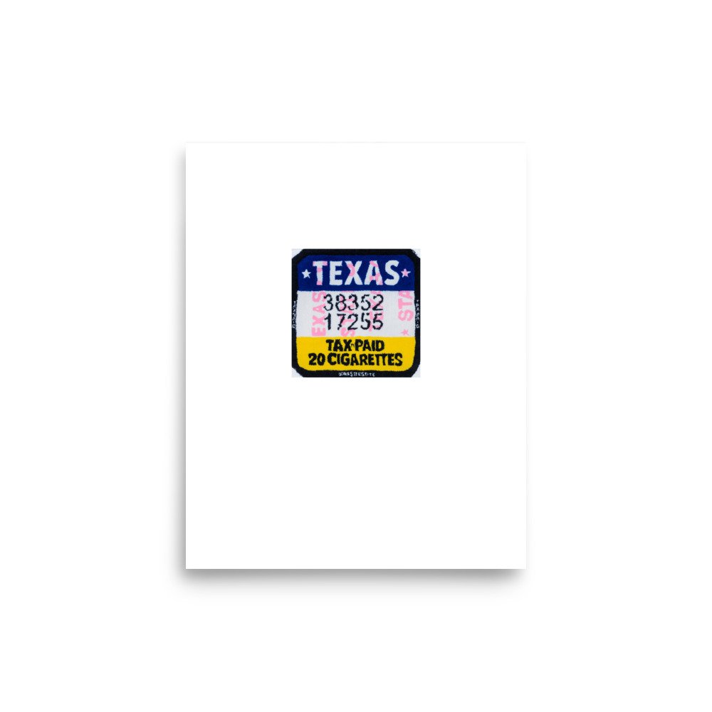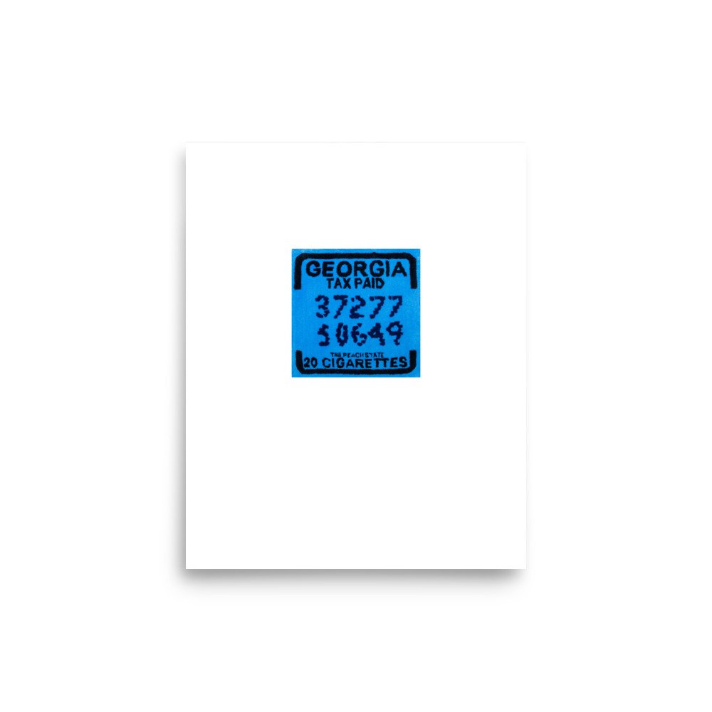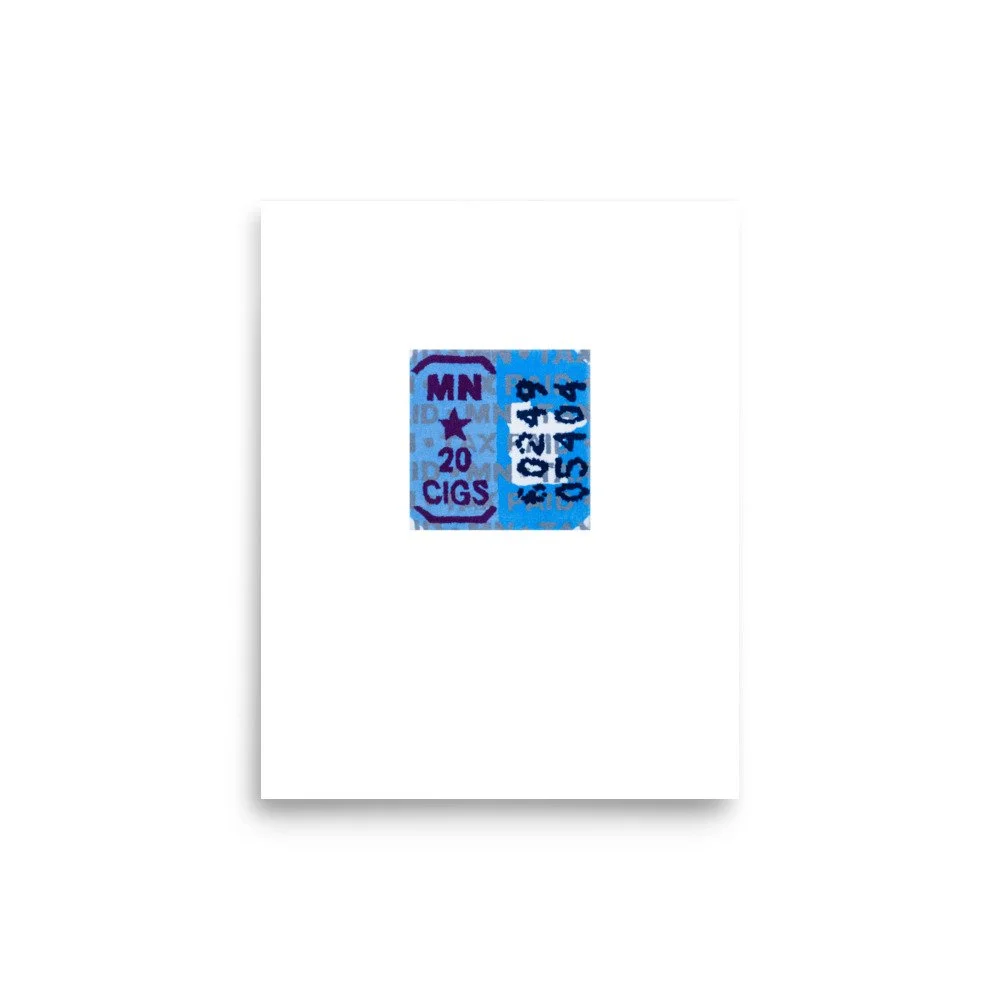 Print of the "Idaho (tobacco) tax tufting" rug, part of a collection of 48 hand-tufted rugs based on the tobacco tax stamps from the United States. This project emerged while processing both personal and collective grief. The work prompts questions of how addiction is woven into the fabric of American culture and history.