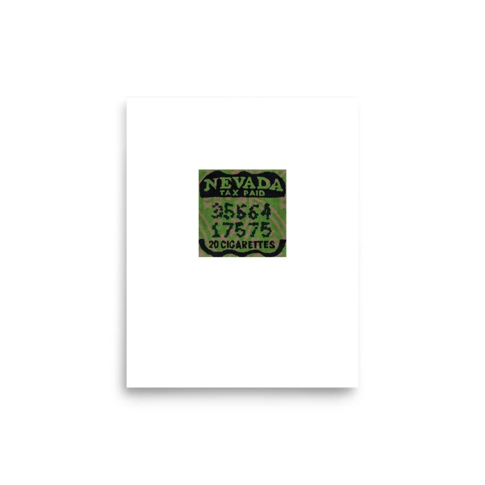 Print of the "Utah (tobacco) tax tufting" rug, part of a collection of 48 hand-tufted rugs based on the tobacco tax stamps from the United States. This project emerged while processing both personal and collective grief. The work prompts questions of how addiction is woven into the fabric of American culture and history.